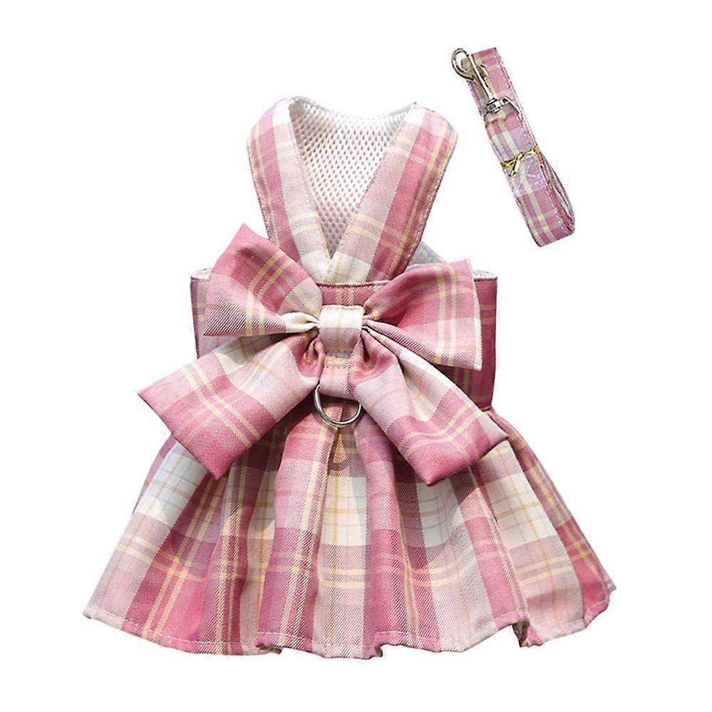 Plaid Dog Dress Set with Bow Tie, Harness & Leash - Cute Princess Style for Small Dogs, Cats, Puppies - Chihuahua, Yorkies Compatible