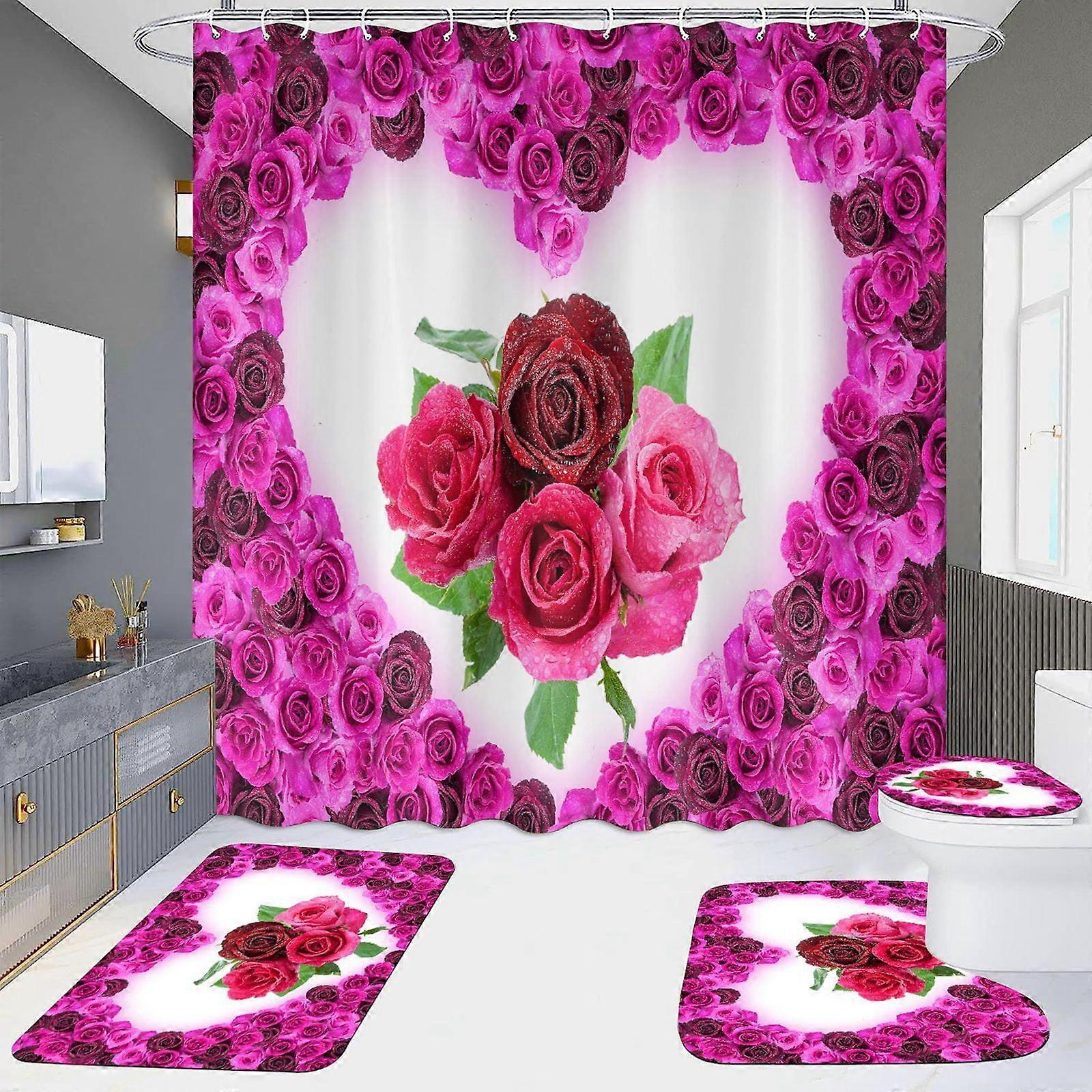 2024 Valentine's Day 4-Piece Shower Curtain Set with Rug, Compatible with Bathroom Decor, Couple Gift