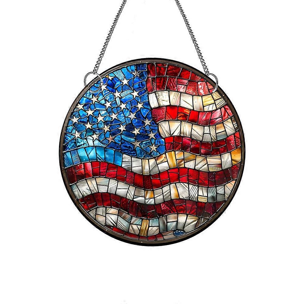 Penkiiy Acrylic Stained Glass Window Hanging, American Flag Ornaments, Double-Sided 4th of July Red White Blue Round Panel Decor