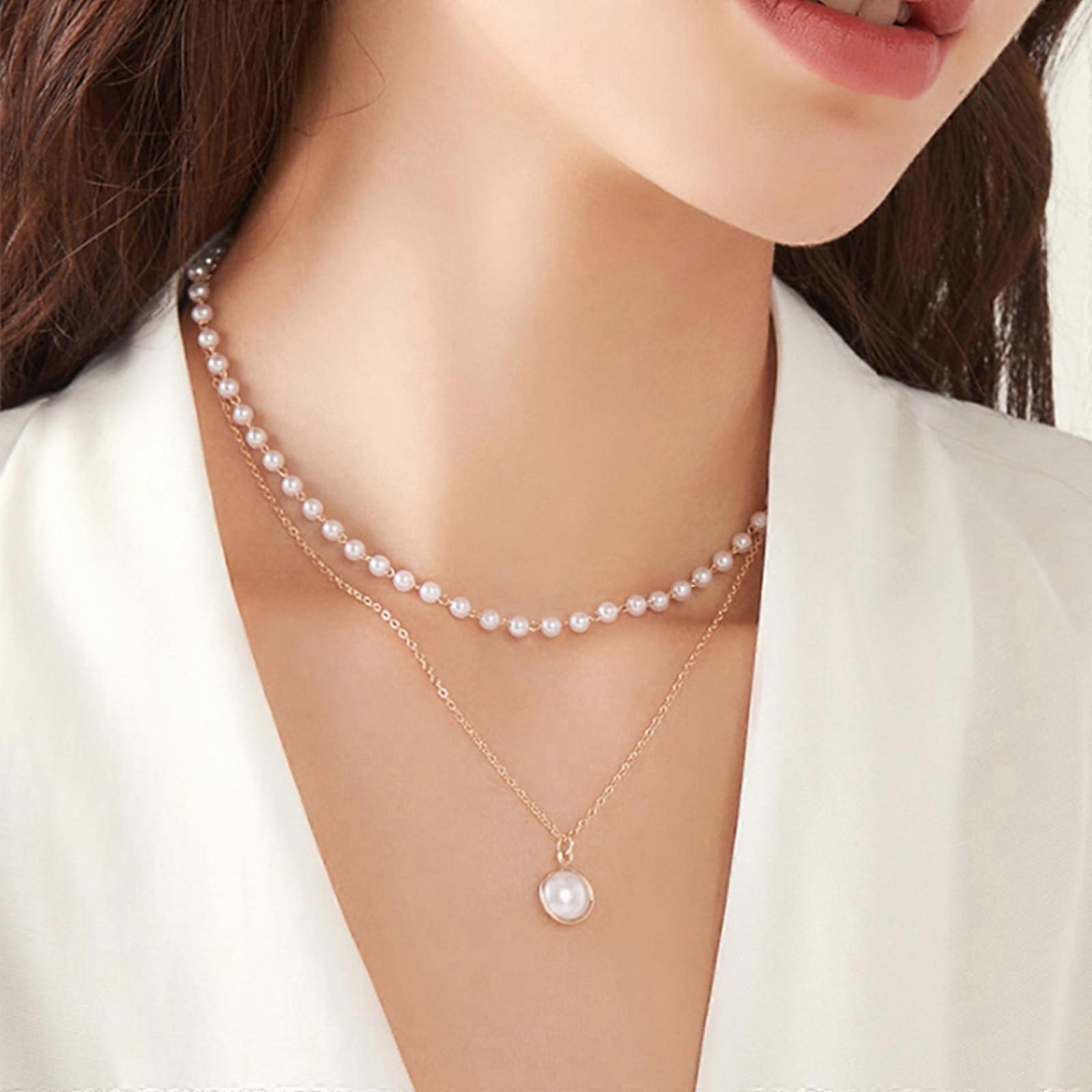 Kayannuo Necklaces Back to School Clearance Women Double Pearl Choker Clavicle Chain Necklace Pendant Charm Jewelry Gifts Birthday Gifts for Women