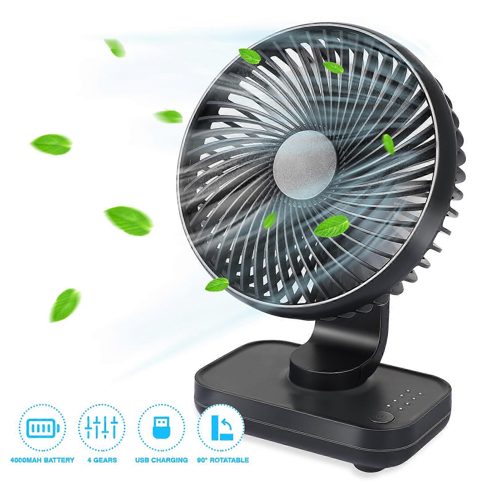 1pc Small Desk Fan 4 Speeds Adjustment Fan Rechargeable Battery Powered Mini Fan Quiet Table Fan Portable Personal Fan