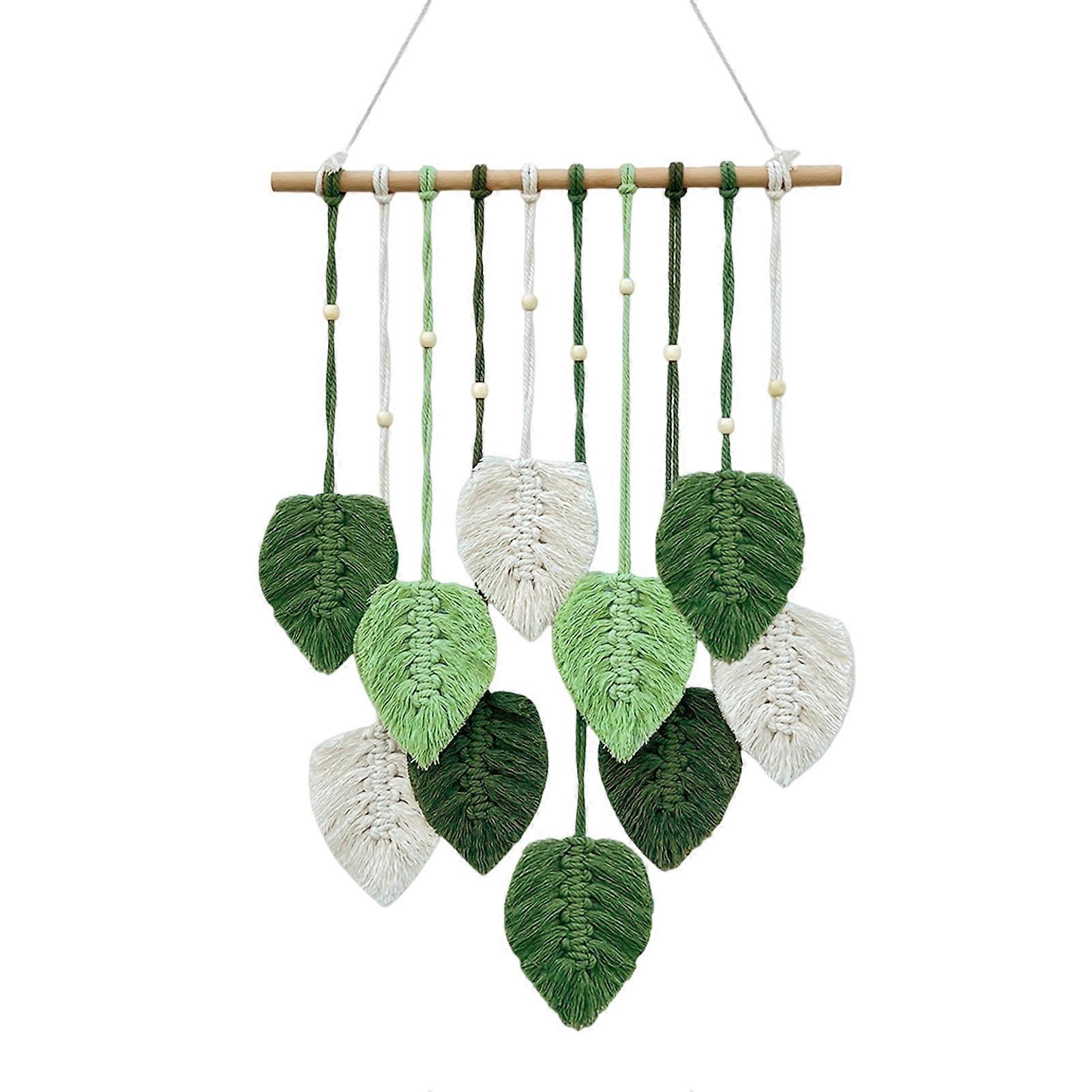 Handmade Cotton Rope Woven Leaf Tapestry, Tassel Wall Hanging Decor for Nursery Bedroom, Boho Chic Art