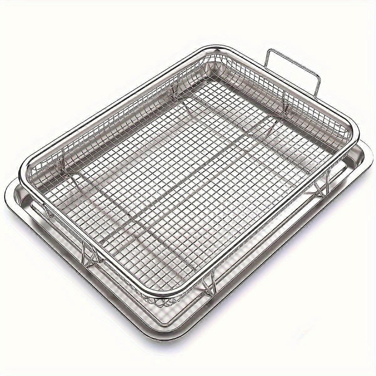 2 pcs/set Stainless Steel Air Fryer Basket 12.8"x9.6" Crisper Tray & Grill Pan for Oven, Kitchen & BBQ Use