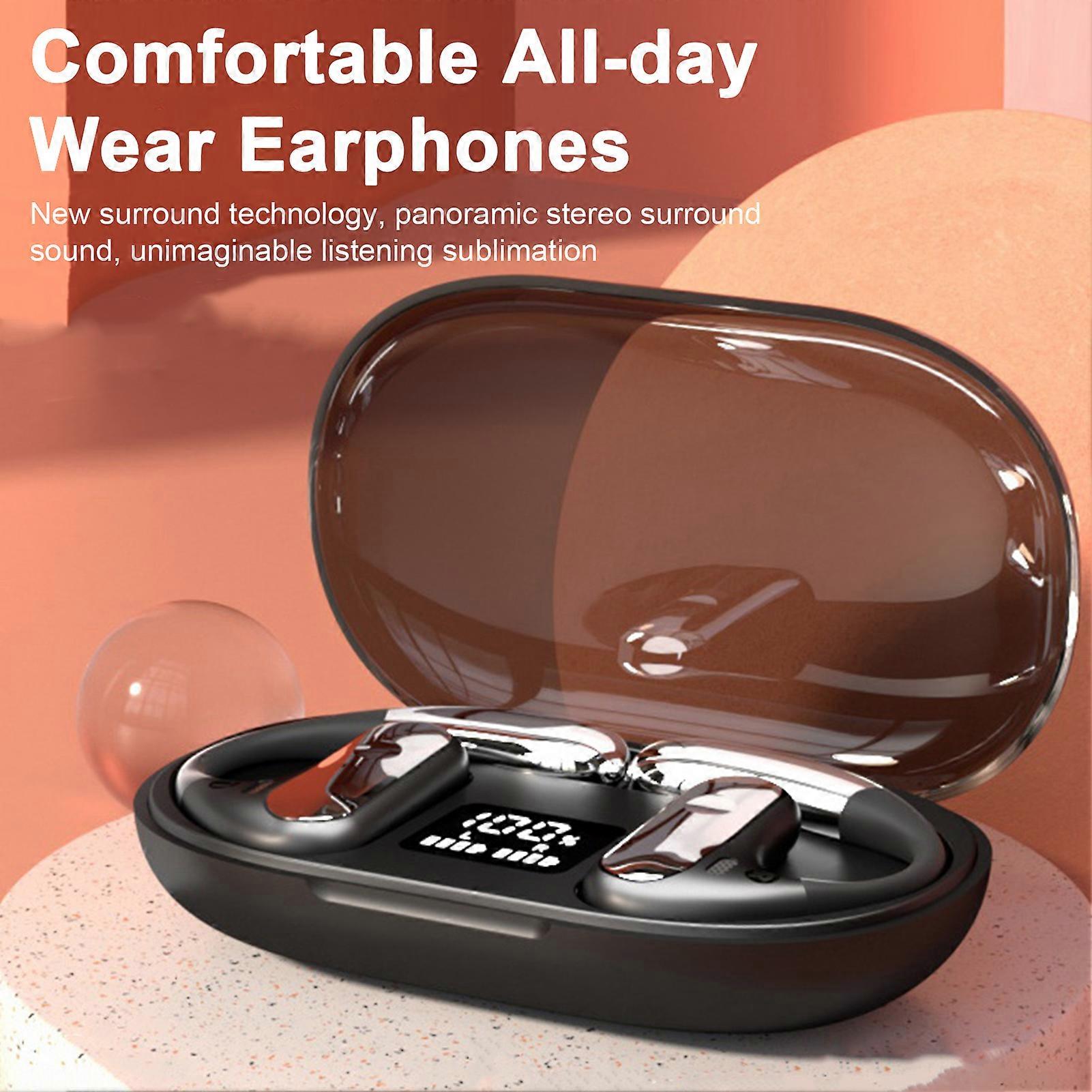 Description: Introducing our revolutionary earphone, designed to provide a more comfortable and immersive listening experience. With a unique interpretation of a more humane wearing method, these earphones automatically adapt to the shape of your auricle, ensuring all-day comfort. Equipped with new surround technology, our earphones deliver panoramic stereo surround sound that will take your listening experience to unimaginable heights. Whether you're enjoying music, playing games, or watching movies, you'll be immersed in a world of sublime audio. Featuring the latest Bluetooth-compatible 5.3 chip, our earphones offer lower power consumption, lower latency, and more stable transmission. Say goodbye to interruptions and enjoy crystal-clear calls without any distortion. We understand the importance of privacy, which is why our earphones are designed with professional directional sound transmission. You can enjoy your favorite music without worrying about sound leakage, providing a natural listening experience that protects your privacy. Versatile and suitable for various activities, our earphones are perfect for sports enthusiasts, home use, music lovers, and gamers alike. Whether you're working out at the gym or relaxing at home, these earphones will enhance your audio experience. Upgrade your listening game with our earphone and indulge in the ultimate audio pleasure. Item Name: Headphones Material: PC, ABS Bluetooth-compatible Protocol: 5.3 Charging Box Battery Capacity: 400mAh Headphone Battery Capacity: 55mAh Wearing Type: Ear Hanging Playback Control: Support Noise Reduction: Smart Noise Reduction Features: Bilateral Stereo Sound, LED Digital Display, Noise Reduction Size Details: L: 10.3cm/4.06", W: 6cm/2.36", H: 2cm/0.79" (Approx.) Notes: Due to the light and screen setting difference, the item's color may be slightly different from the pictures. Please allow slight dimension difference due to different manual measurement. Package Includes: 2 x Headphones 1 x Charging Compartment Comfortable All-day Wear: Earphones automatically adapt to the shape of the auricle, ensuring a comfortable fit for extended use. Immersive Sound Experience: New surround technology delivers panoramic stereo surround sound, taking your listening experience to new heights. Enhanced Connectivity: Bluetooth-compatible 5.3 chip ensures lower power consumption, lower latency, and more stable transmission for seamless audio streaming and clearer calls. Privacy Protection: Professional directional sound transmission prevents sound leakage, providing a natural listening experience while protecting your privacy. Versatile Usage: Perfect for sports, home, music, and gaming, these earphones are designed to enhance your audio experience in any setting.