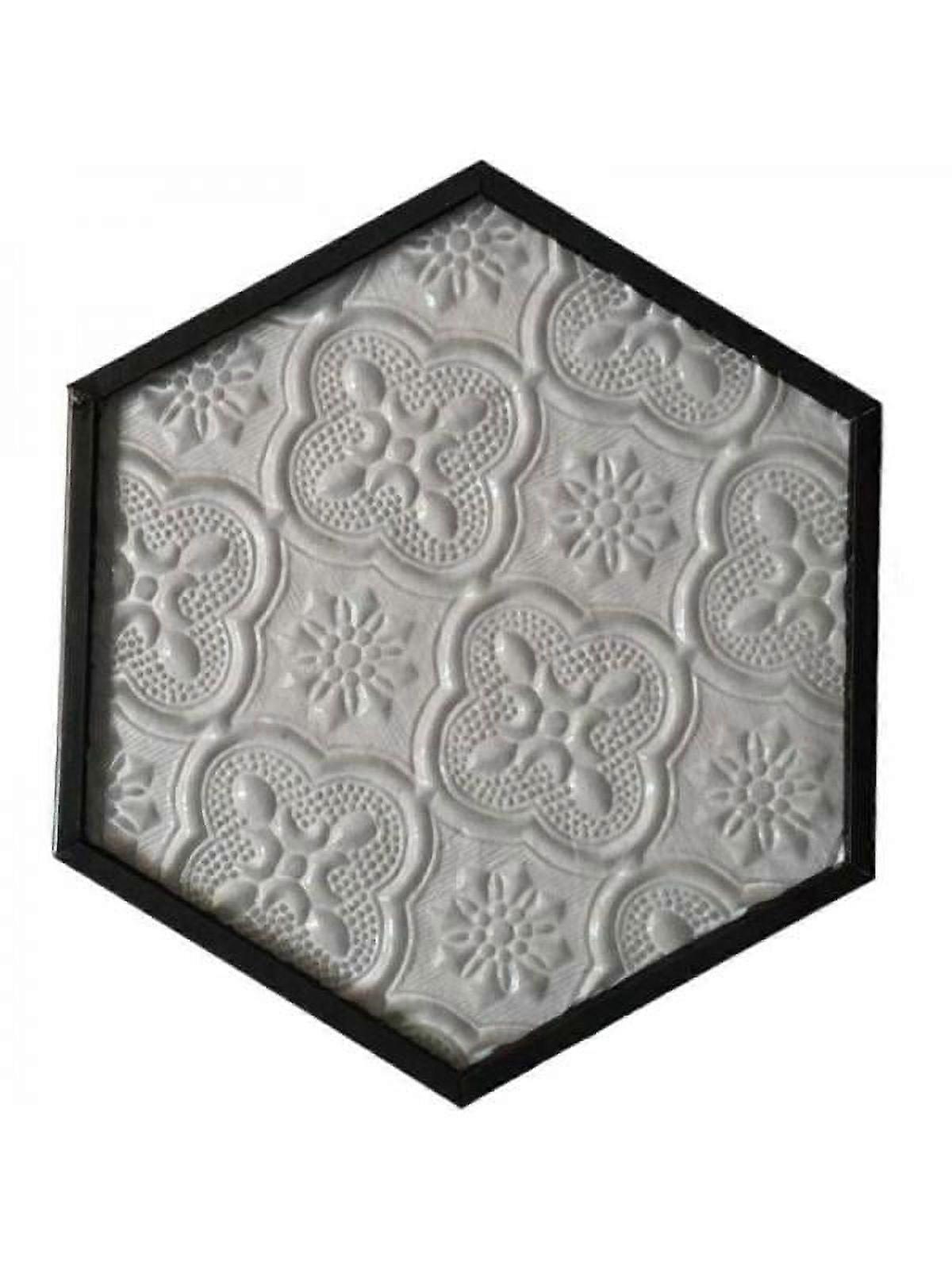 Feiona Ins European Retro Window Grille Glass Coaster Gold Copper Embossed Pattern Hexagonal Glass Coaster Dining Insulation Pad