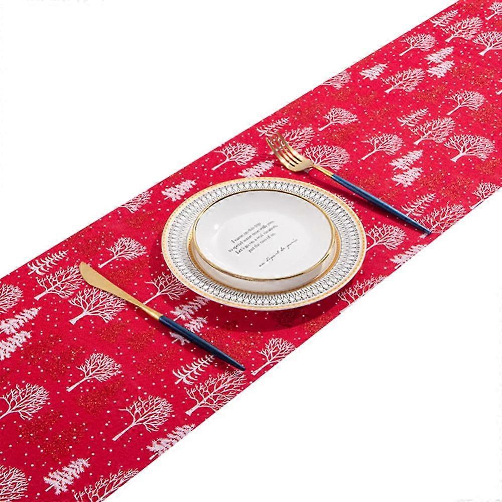 Slopehill 11 x 108 Inch Christmas Table Runner Embroidered Table Runner Red Table Cotton Linen for Christmas Decorations