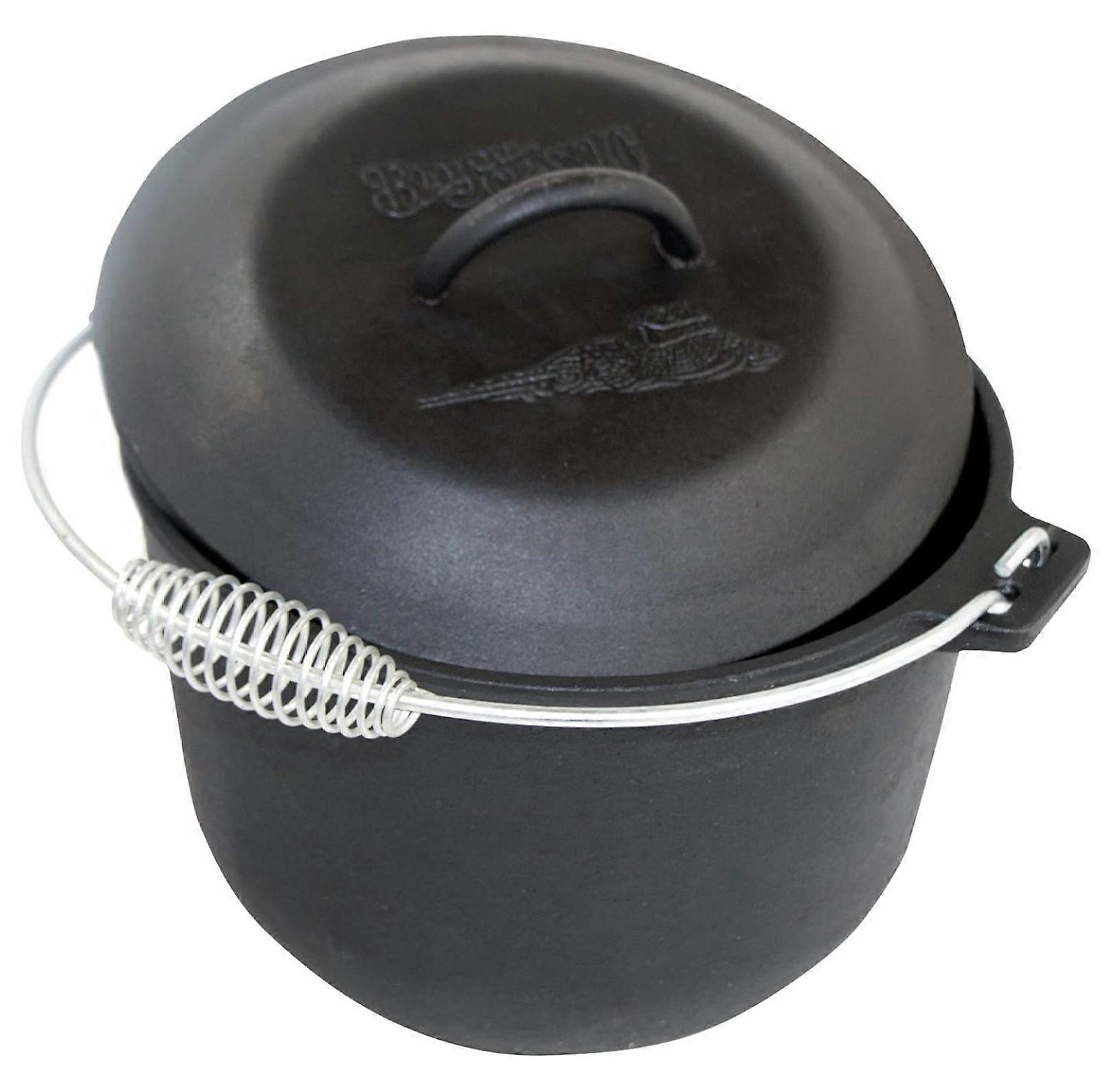 6-qt Pre-Seasoned Cast Iron Soup Pot with Domed Lid, Rounded Interior, Flat Bottom, Ideal for Slow Cooking, Soups, Stews, and Risotto