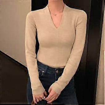 FOTVOTEE Women Solid Slim Pullover Korean Fashion V Neck Casual Long Sleeve Knitted Tops 2025 Autumn Winter Lady Commute T Shirt