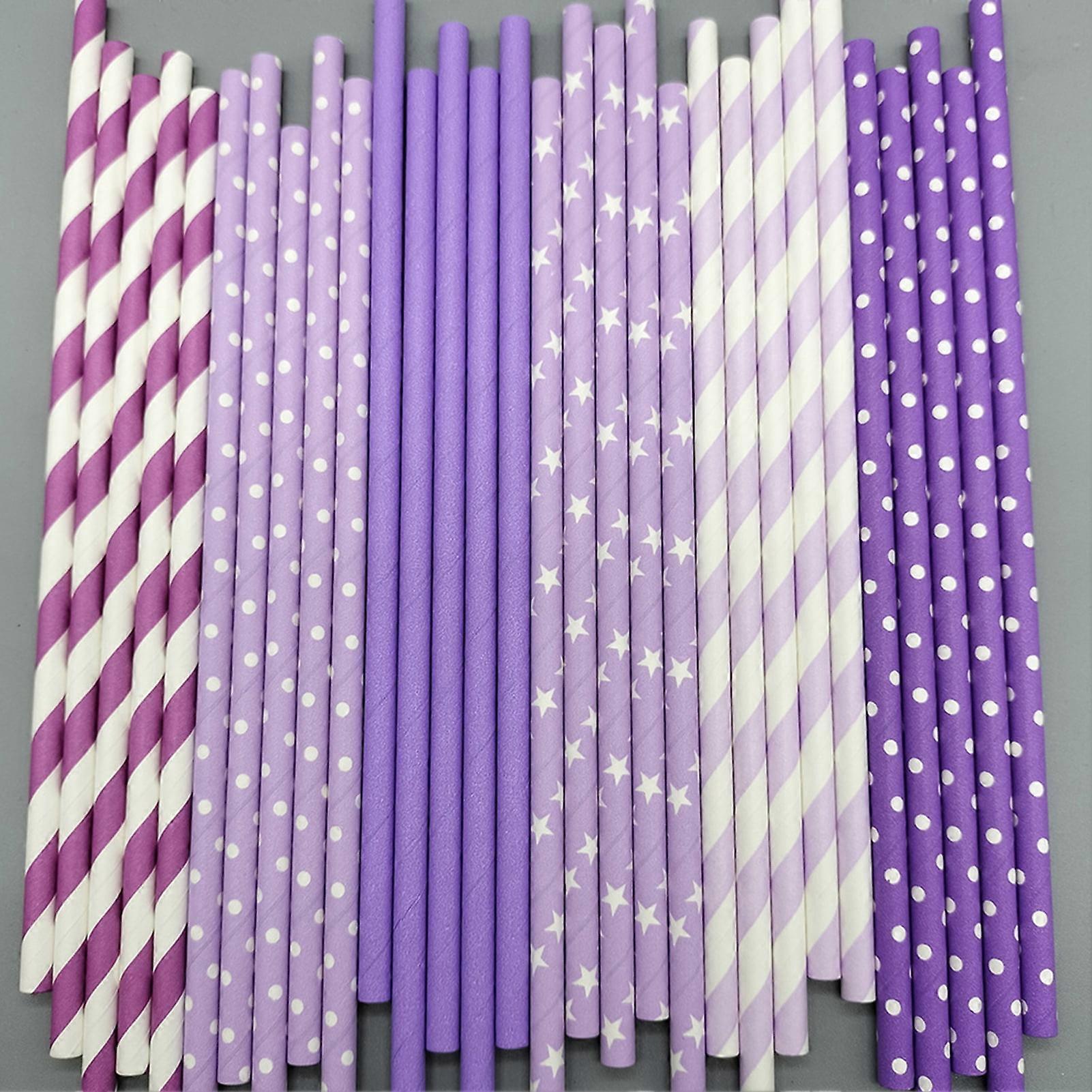 Hariumiu 100Pcs Disposable Paper Straws Food Grade BPA Free Rich Color Holiday Party Heart Dot Print Drinking Water Straws