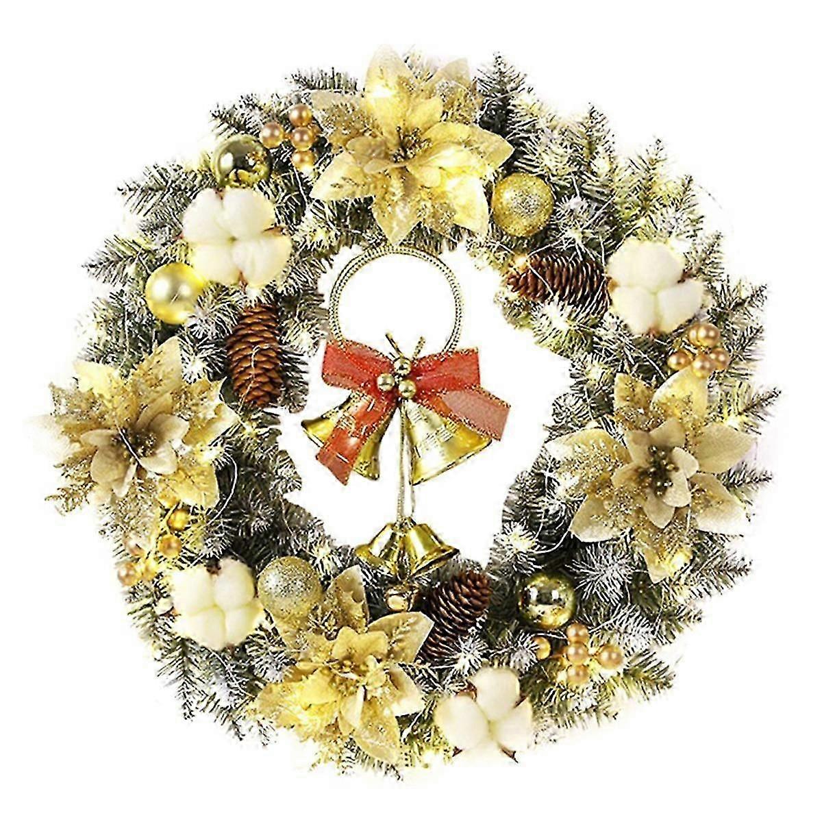 Handcrafted Pine Needle Christmas Wreath with Pinecones and Gold Accents with LED Lights - Perfecte