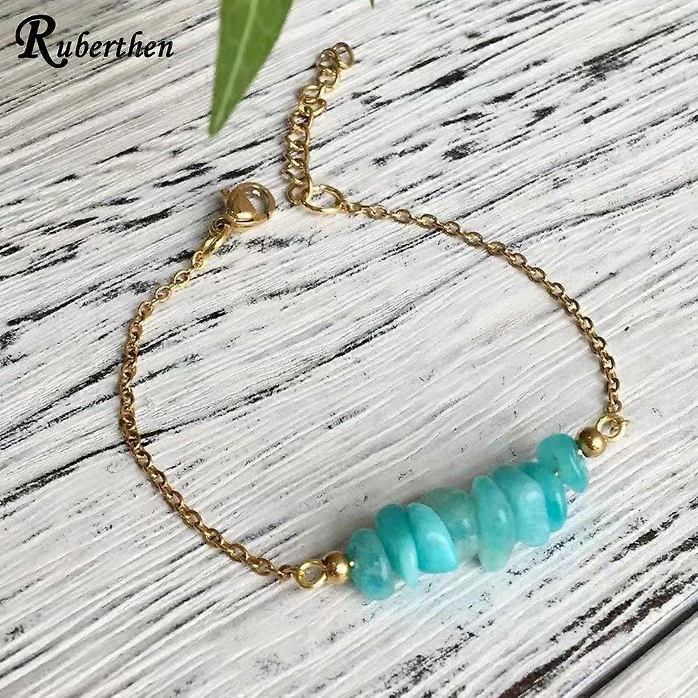 Ruberthen New Design Raw Green Amazonite Adjustable Chain Bracelet Womens Crystal Healing Intention Bracelet