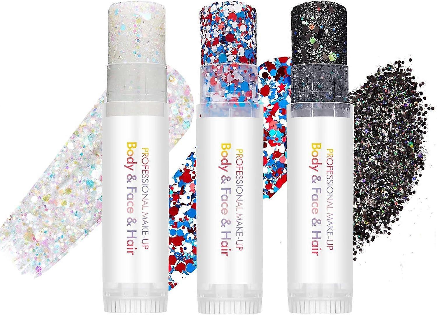 3 Pcs Body Glitter Gel, Face Glitter Body Gel Sequins, Mermaid Glitter Stick Shine Hair Eyeshadow Black Blue Red Face Body Glitter Concerts
