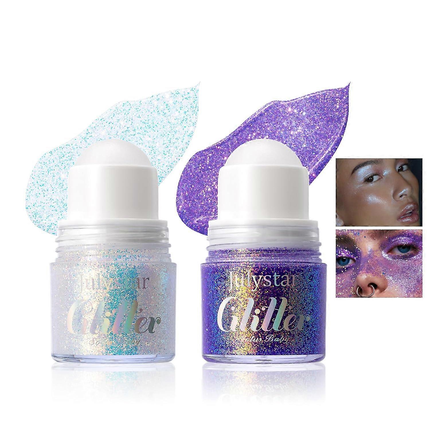 2 Pcs Roll-on Body Glitter Gel Glitter Stick, Long Lasting Mermaid Shine Hair Eyeshadow Face Body Glitter Sequins Concerts Music Festivals
