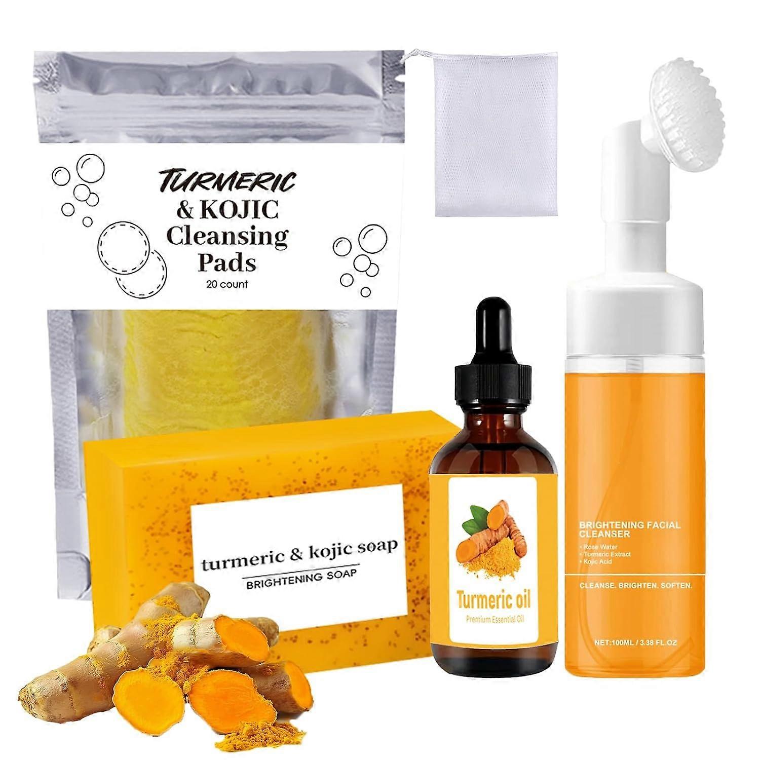 Turmeric Wash and Care 4 Piece Set, Turmeric Face Wash with Brush, Gentle Cleansing Moisturizing Skincare Set for Face Soap Bar | Mousse