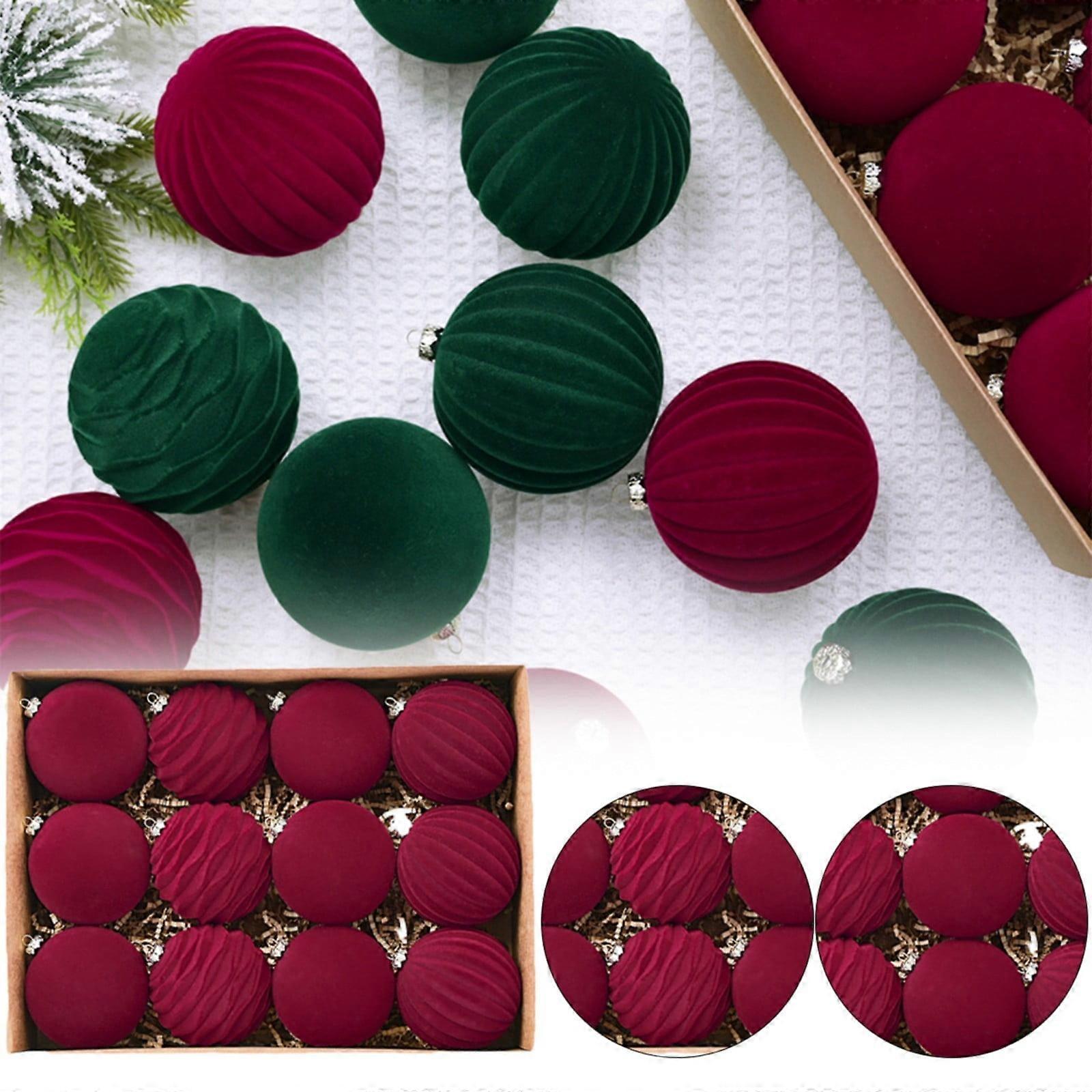 Christmas Ball Ornaments, Flocked Red Pendants for Holiday, Wedding, Party - Compatible with Christmas Tree Decorations