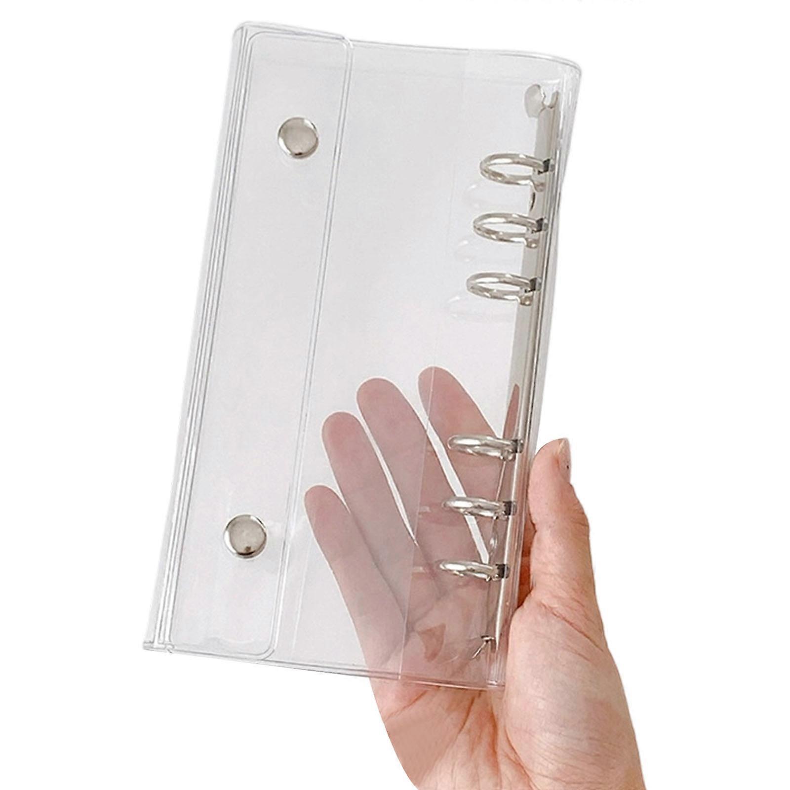 Features: Clear PVC binder cover with snapping button closure, crafted from water resistant PVC and metal for long time durability in stylish card organization. Features 6 metal rings and water resistant PVC construction, for card storage and metal rings mechanisms to rearrange page effortlessly, combining practicality with aesthetics. Suitable for fashion individuals, students, women, office professional, and creatives seeks portable card organization accessories that complement modern workstations. Widely used for jotting ideas in cafe, managing documents during office meeting, or keeping study sheet tidy in classrooms. This light weight binder cover ensures scratch resistant protect for refillable notebook journal insert pages while elevating desk aesthetics through its space efficient designs. Specifications: Color: Clear Component: PVC Size: Approx. 10x19.7cm/3.94x7.76in Weight: Approx. 115g Package Includes: 1Pc 6 Rings PVC Covers note: 1.Please allow 0-1cm error due to manual measurement. Be sure you donot mind before bid. 2.Due to difference between different monitors, the picture may not reflect the actual color