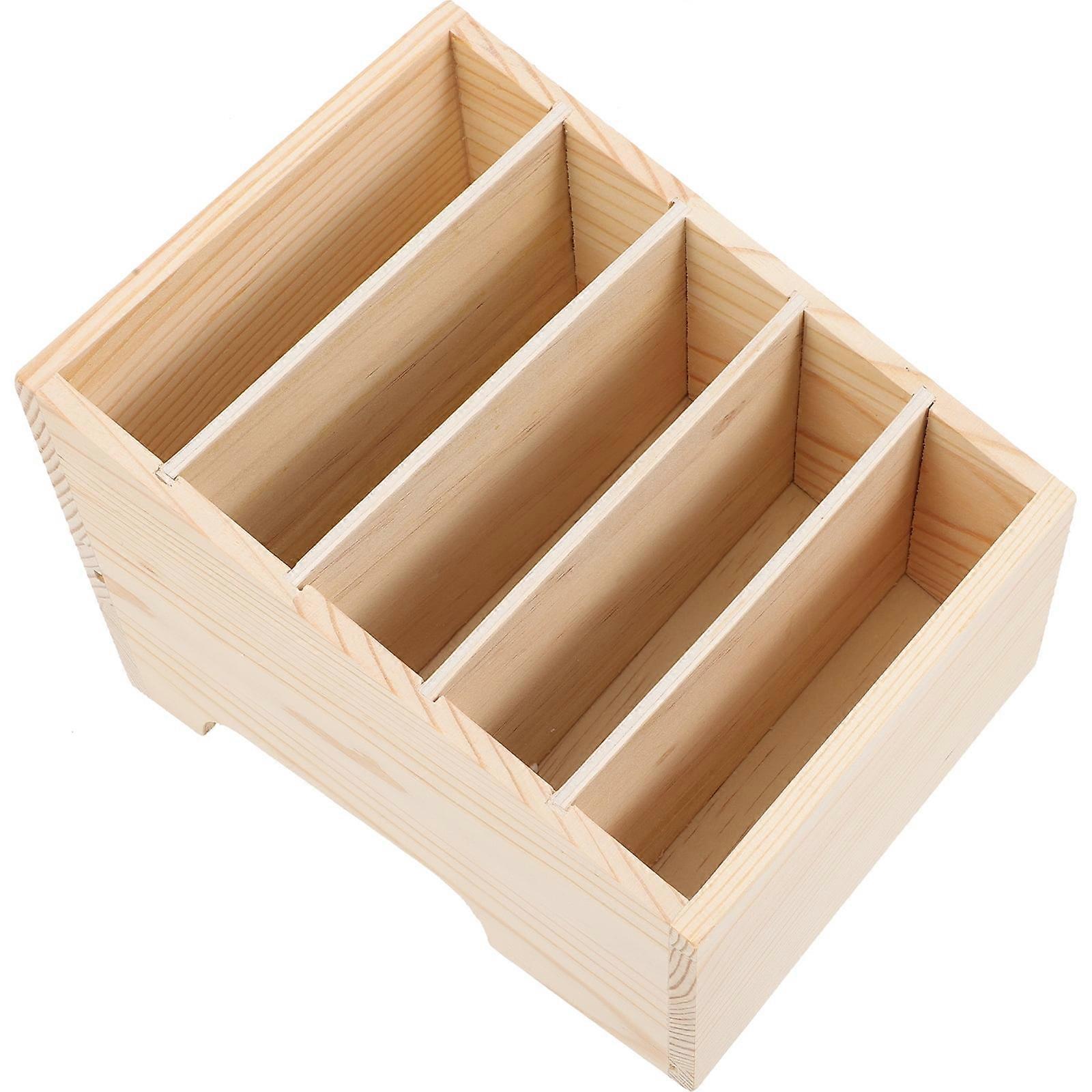 Wooden Desktop Organizer 5 Compartments Sundries Storage Box for Home Office