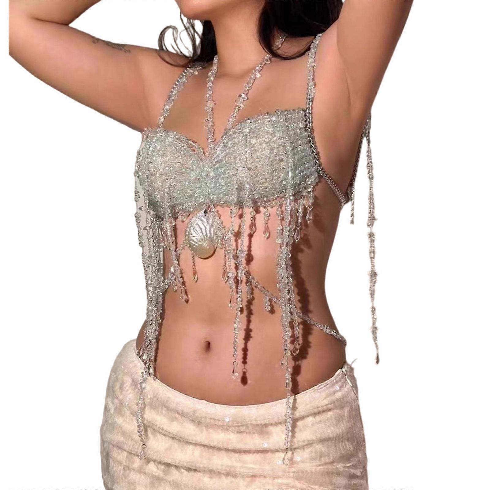 Fringe Body Chain For Women Stylish Acrylic Accessory Tank Tops Perfect For Beach Parties Music Festivals Light green Universal code