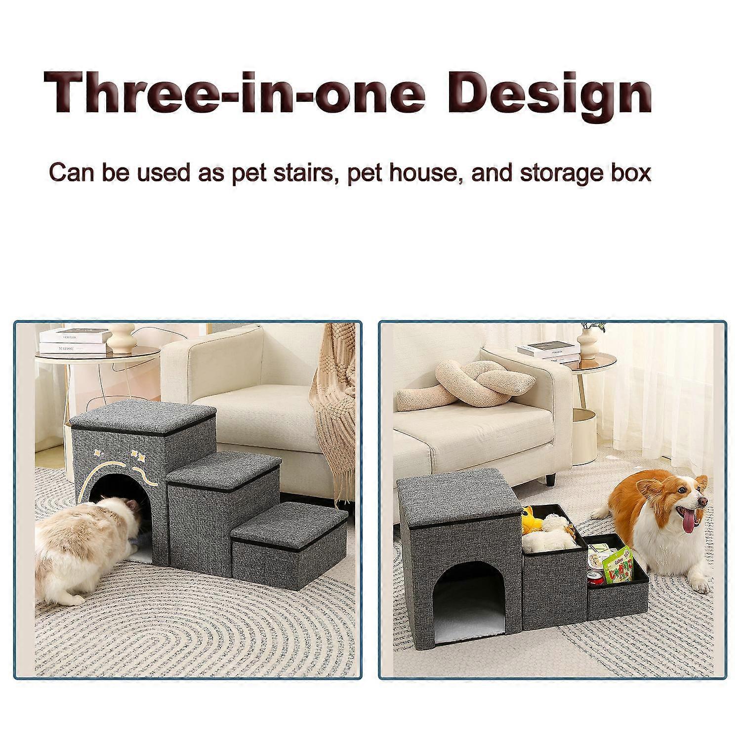 Pet Stairs Foldable Dog Steps Comfortable and Durable Three-in-one Design Stairs with Storage and P