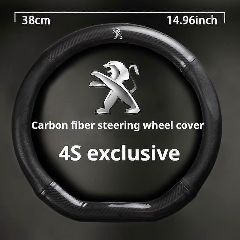 Apply 38CM For Peugeot 208 308 2008 3008 4008 508L 5008 408 Car Nappa leather carbon fiber steering wheel cover non-slip car interior