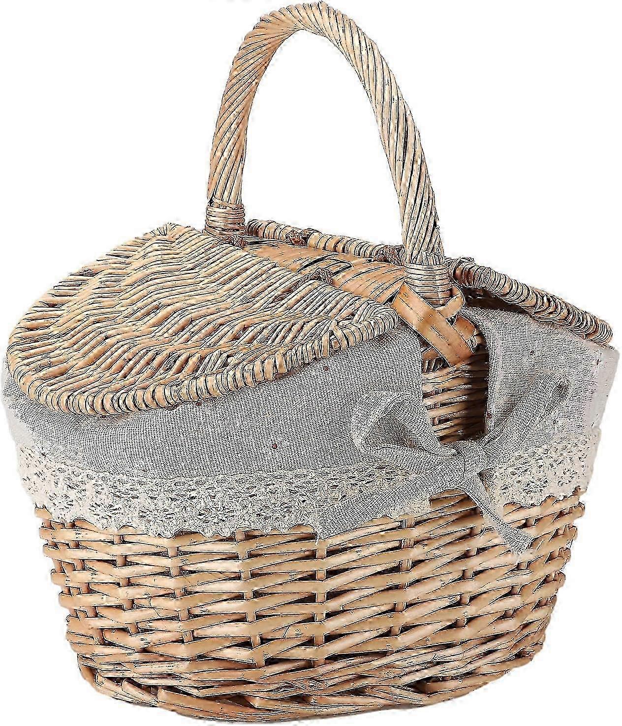 Wicker Picnic Basket with Liner, Ideal for Outdoor Dining and Storage w
