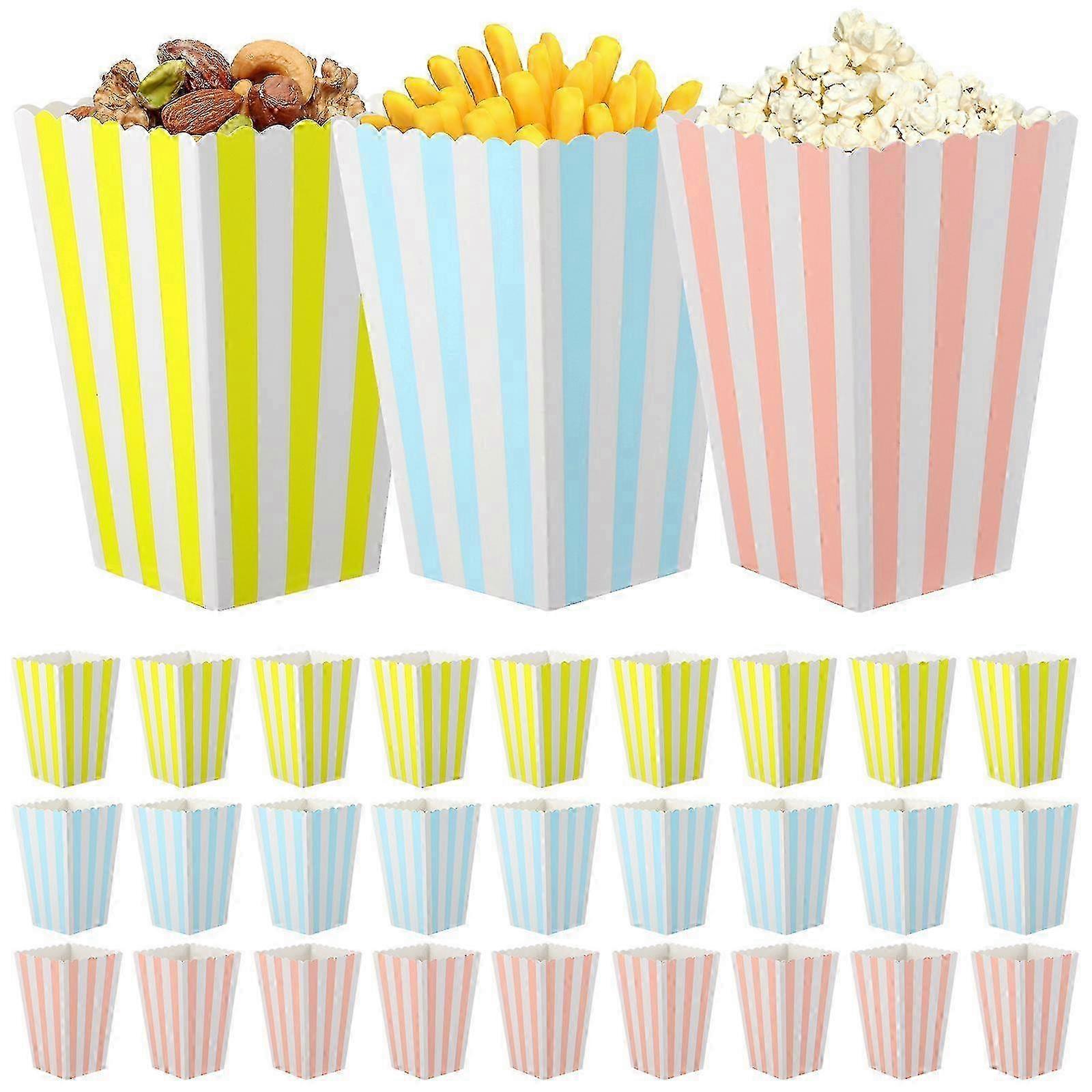 60 Pcs Popcorn Boxes Colorful Striped Snack Boxes Candy Containers for Home Theater Party Carnival w