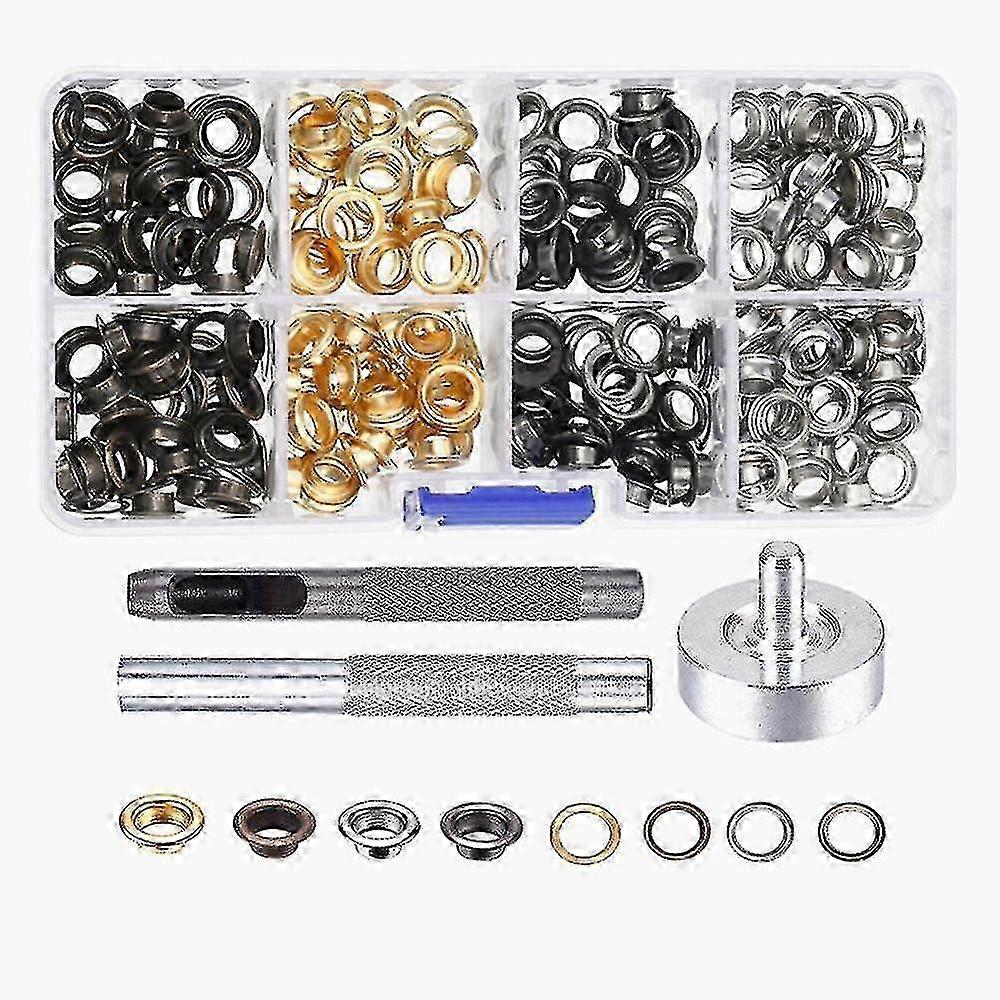 200 Set Grommets Grommet Tools For Canvas Clothes Leather 6mm With Buckle Tool Specification: Grommets color: 4 color, 50 set each color Metal grommets size: approx. 6 mm or 1 or 4 inch in inside diameter, 10 mm or 7 or 16 inch in outside diameter, 3 mm or 1 or 8 inch in metal tube length Each set of grommet includes 2 parts: a eyelet and a gasket These grommet set are made of durable metal, they are sturdy and resistant to corrosion and rust. They are suitable for canvas, tarps, tents, awnings, and other cloth-made items. Easy to use:These grommets are equipped with 3 pieces tools including punch, base and install tool The punch tool can poke a hole on leather crafts, leather straps or clothing, then hammer it to push grommets together, good for adding ornaments to your crafts. Package includes: 20010Set Grommet with buckle tools Note: Due to the light and screen setting difference, the item's color may be slightly different from the pictures. Please allow slight dimension difference due to different manual measurement.