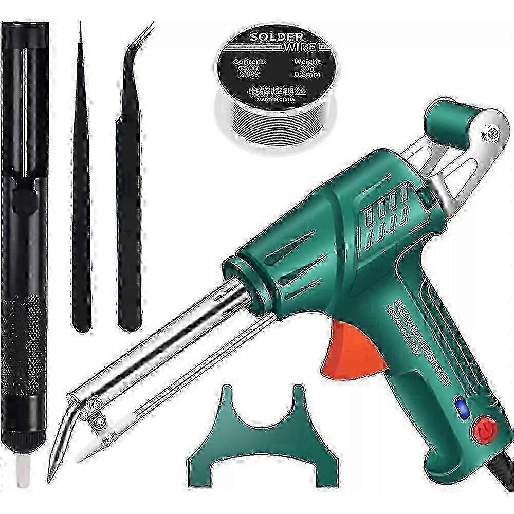 Multi-Function Soldering Iron Soldering Gun Set, 60W External Heating Soldering Gun, Auto Send Tin Soldering Kit for Repairs Home DIYSpecification:Product Name: Multi-function soldering iron soldering gun setColor: GreenMaterial: MetalandPlasticCharging voltage: 110V or 220V Power: 60WPlug:EU PlugAccommodates solder wire with a diameter of 0.8-1.2mm and a weight of 50-100g. Note: Due to the light and screen setting difference, the item's color may be slightly different from the pictures. Please allow slight dimension difference due to different manual measurement.