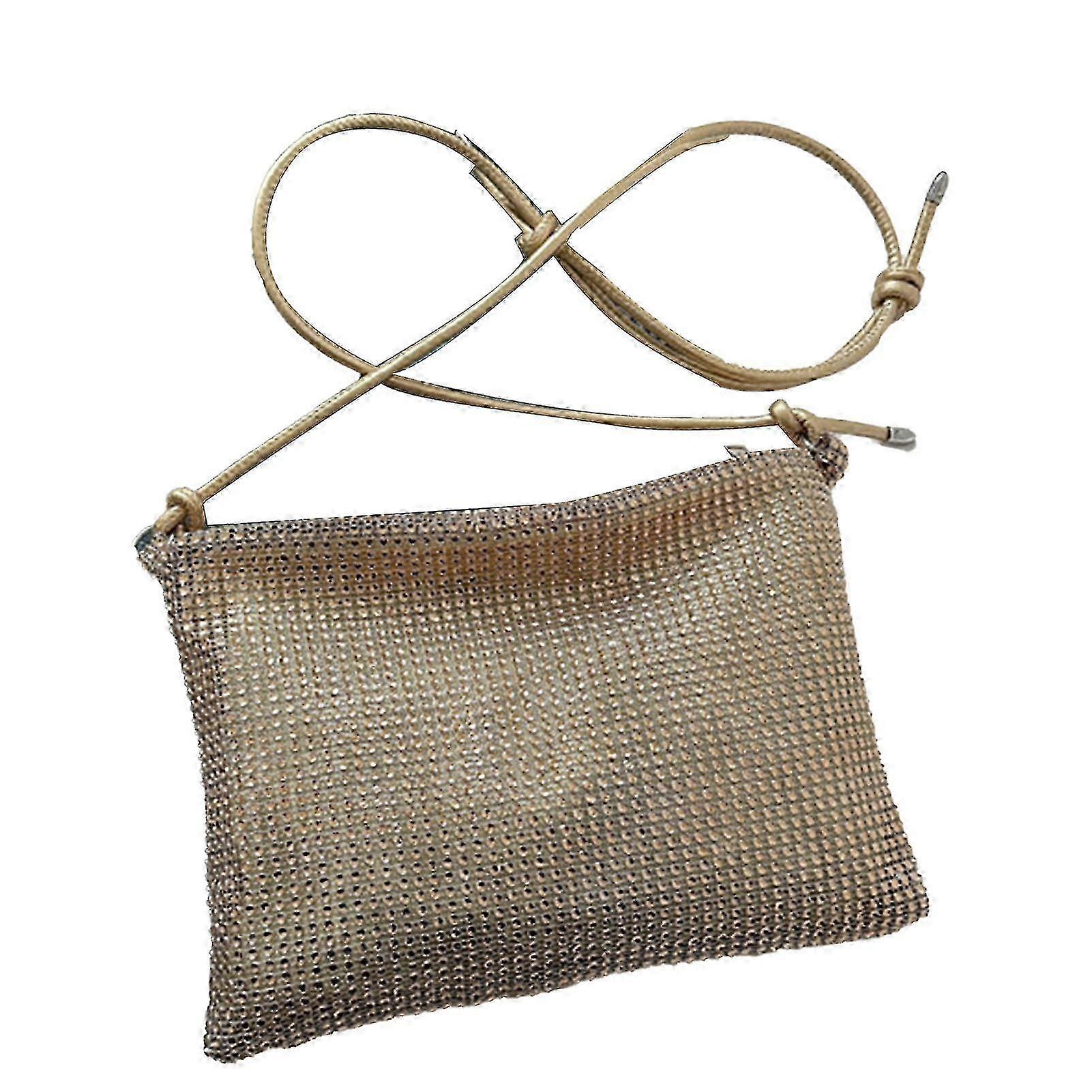 Women Shoulder Bag Rhinestone Embedded Adjust Straps Large Capacity Messenger Bag for Daily Use Gold One Size w