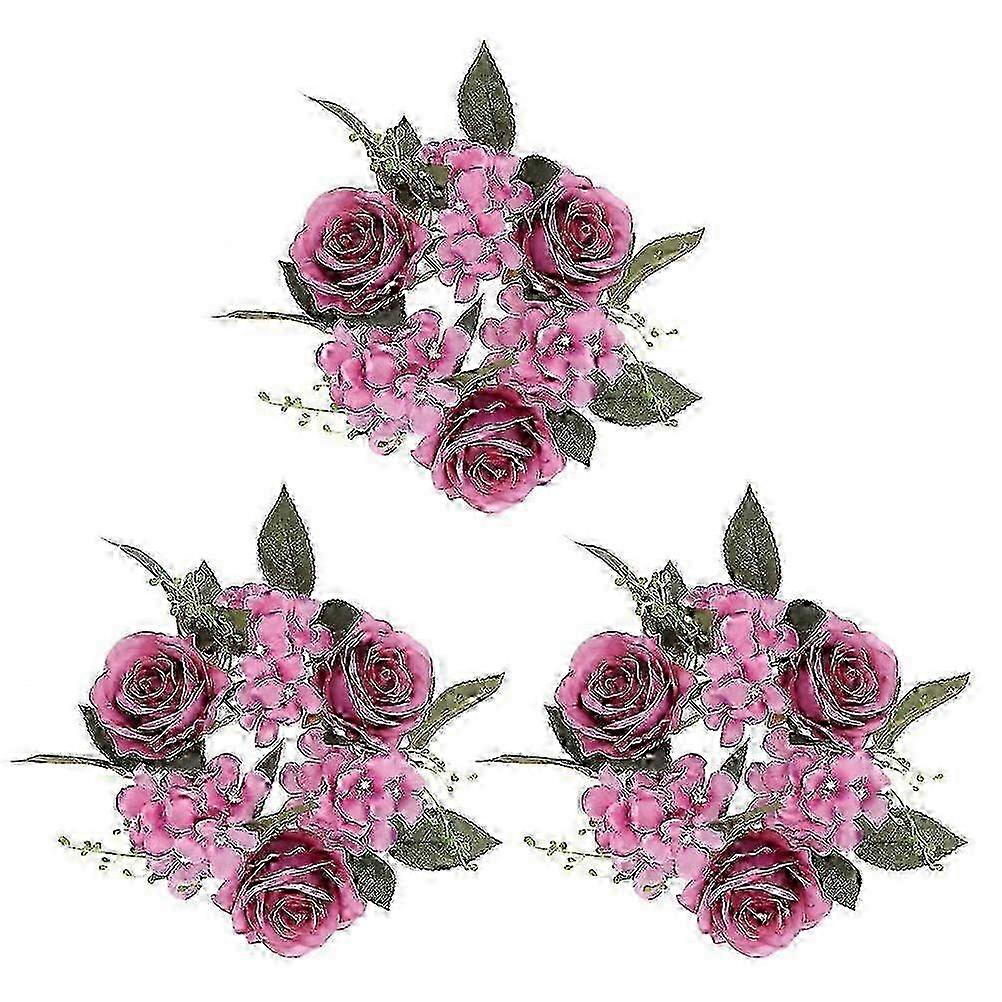 3Pcs Candle Rings Wreaths Artificial Rose Flower Candle Ring for Wedding Table Party Home Decor w
