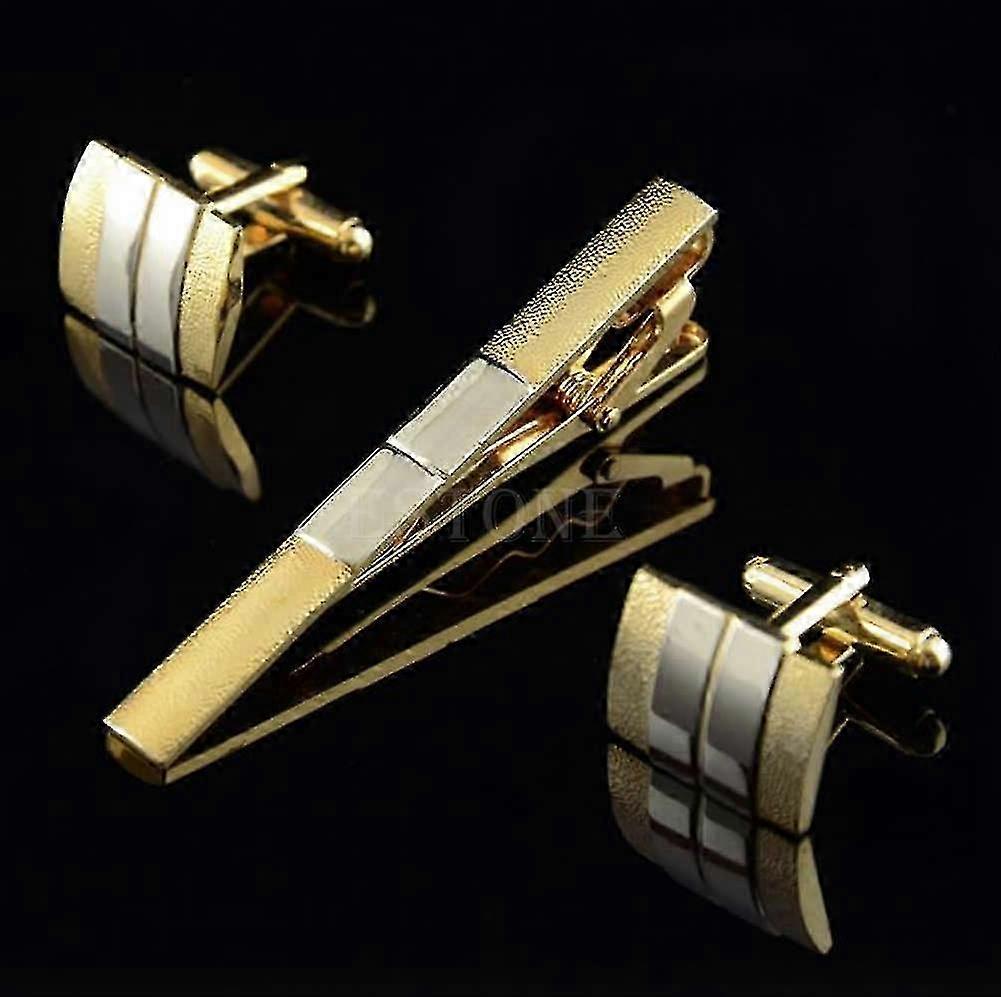 Fashion Men Necktie Tie Bar Clasp Clip Cufflinks Sets Gold Simple Party Gift New w