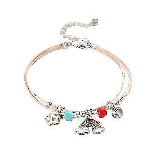 Sweet Cartoon Rainbow Flower Bracelet for Women Girls Kids Cute Enamel Pendant Peach Daisy Woven Rope Chain Jewelry Wrist Bijoux w
