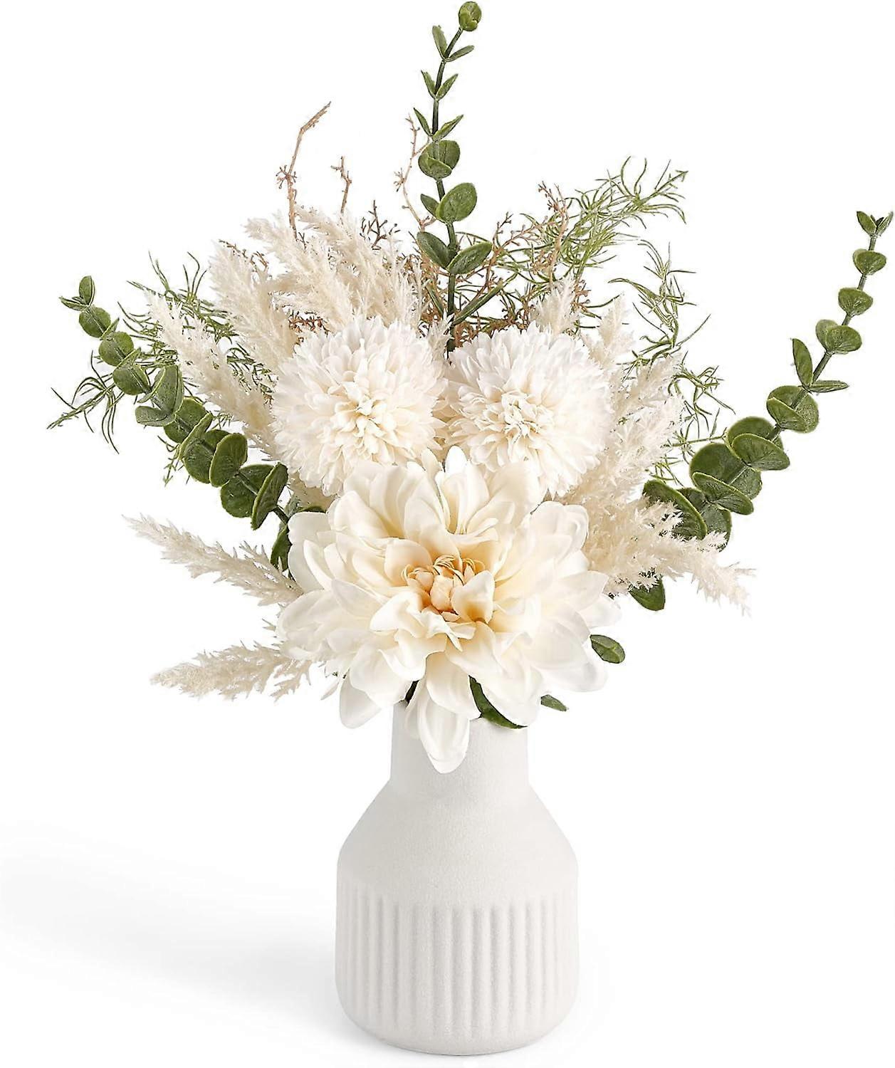 NANAHuang 13.5" Artificial Flowers in Ceramic Vase, Silk Flower Arrangements for Home Decor, Coffee Table Centerpiece, Brown, compatible with home