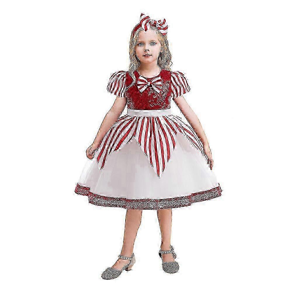 w Girls Christmas Puff Sleeve Green A-Line Dress with Headband Set Striped Dress Xmas Outfit