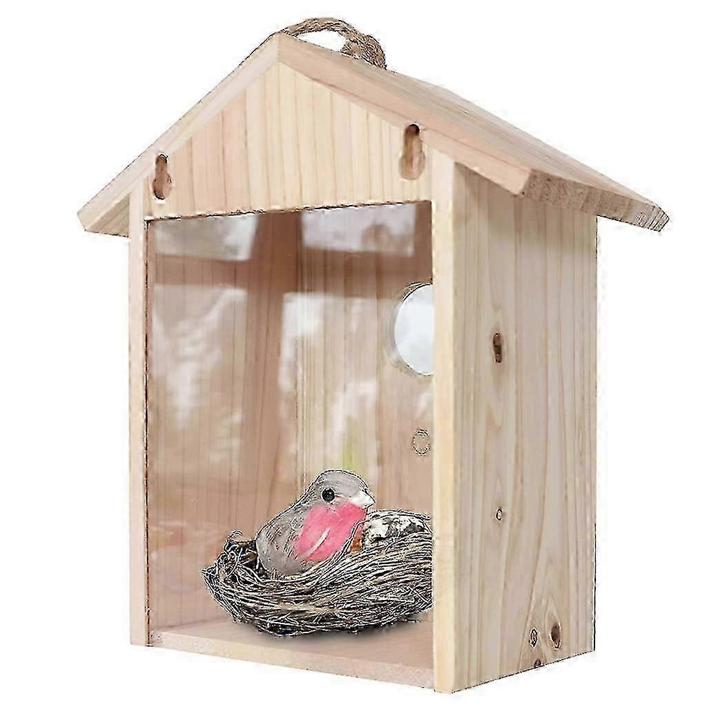 w Wooden Bird House for Outdoor Windows - Transparent Nesting Box with Strong Suction Cups for Blue Birds and Other Small Birds