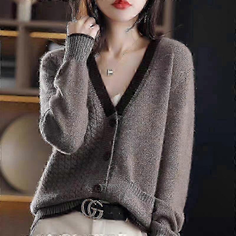 w Women Cardigan Sweater Spring New Loose Long Sleeve Woolen Knitted Cardigan Patchwork V-Neck Sweater Cardigan Female Coat Tops
