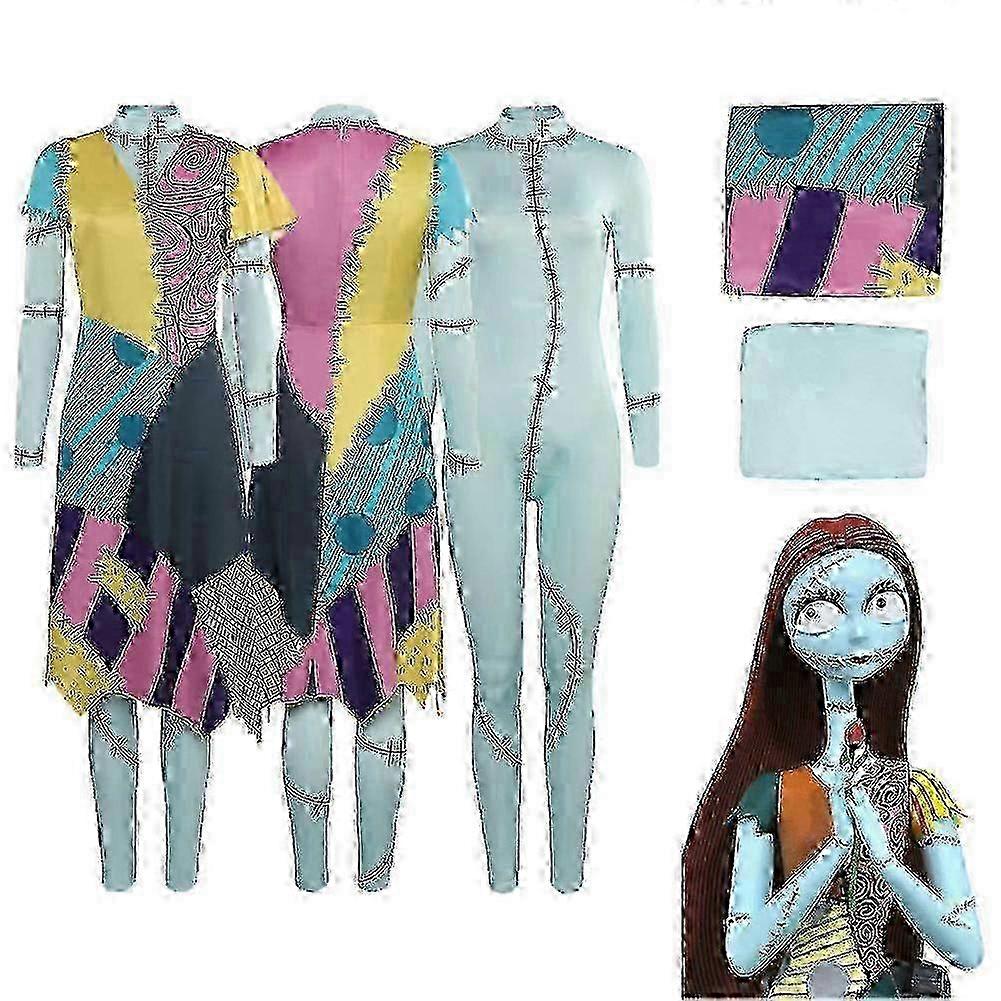 w Anime Nightmare Cos Before Christmas Sally Cosplay Costume Jumpsuit Dress Outfits For Adult Women Girls Halloween Carnival Suit