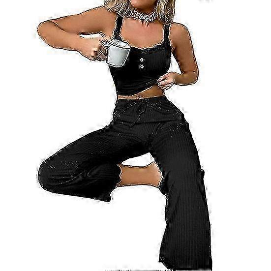 Stylish and classic two-piece pajama set for women, perfect for lounging at home or relaxing in the bedroom. Made from soft and delicate fabric, ensuring a comfortable and skin-friendly experience for all body shapes and ages. Simple solid color design makes it versatile for daily wear, providing a fashionable yet casual look. Breathable and comfortable fabric makes it suitable for various occasions such as home, bedroom, or even the bathroom. Elevate your loungewear collection with this top and pants set, offering a new level of comfort and style. Description: Introducing our Women's Two-Piece Pajama Set, the perfect combination of comfort and style for your everyday needs. Made from a soft, breathable, and skin-friendly fabric, this set offers a new level of comfort and luxury. The fashionable and classic design is delicate to the touch, making it suitable for various occasions such as home, bedroom, or bathroom. The simple solid color makes it versatile and suitable for most body shapes and ages. Whether you're lounging at home or getting ready for bed, this two-piece pajama set will meet your daily needs with ease. Upgrade your loungewear collection with our top and pants two-piece pajama set and experience the ultimate in comfort and style. Item Name: Top Pants Suit Material: Polyester Size Type: Regular Style: Casual Gender: Women Top Length: Short Neck: V Neck Sleeve Length: Sleeveless Waist: High Waist Pants Length: Full Length Season: Summer Features: Lace, Solid Color, Elastic Waist Size Details: Size: S, Bust: 76cm, Clothes Length: 38cm, Waist: 64cm, Hip: 101cm, Pants Length: 96cm(Approx.) Size: M, Bust: 80cm, Clothes Length: 39cm, Waist: 68cm, Hip: 105cm, Pants Length: 97cm(Approx.) Size: L, Bust: 86cm, Clothes Length: 40cm, Waist: 74cm, Hip: 111cm, Pants Length: 99cm(Approx.) Size: XL, Bust: 92cm, Clothes Length: 42cm, Waist: 80cm, Hip: 117cm, Pants Length: 100cm(Approx.) Notes: Please refer to our size chart and choose the right size. Due to the light and screen setting difference, the item's color may be slightly different from the pictures. Package Includes: 1 x Top 1 x Pants Note: Due to the light and screen setting difference, the item's color may be slightly different from the pictures. Please allow slight dimension difference due to different manual measurement.