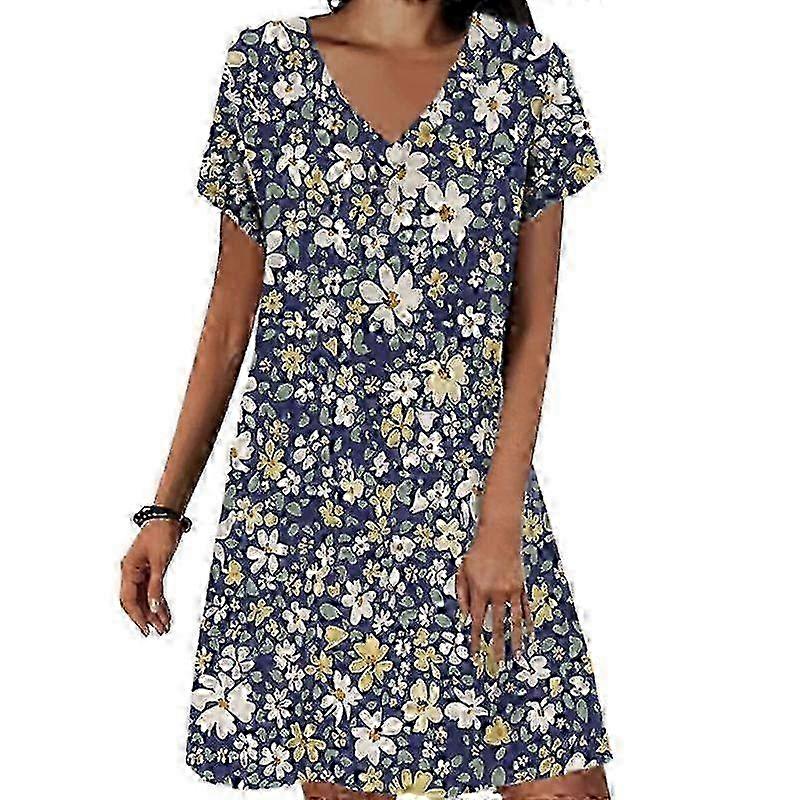 w Summer Fashion V-neck Dress Ladies Short Sleeve Pink Rose Printed Dress Loose Casual Dress for Women