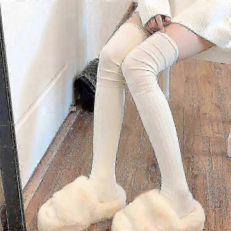w 5 Colors Thigh High Stockings Women OverKnee Long Sock Warm Knitted Boot Socks Leg Warmer Japanese JK Cotton Tall Tube Leggings