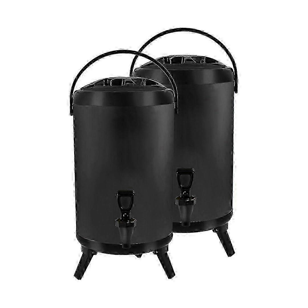 w 2X 10L Stainless Steel Insulated Milk Tea Barrel Hot and Cold Beverage Dispenser Container with Faucet Black