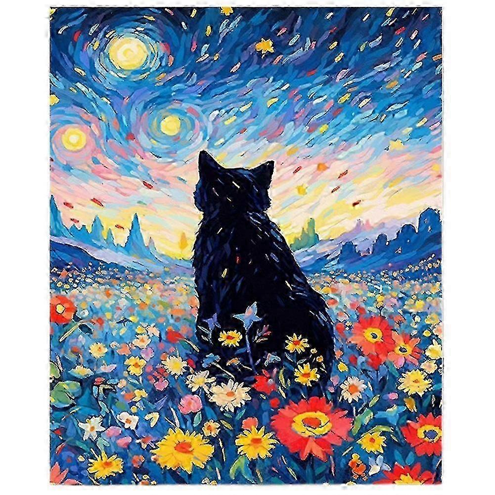 w Starry Sky Cat Diy Digital Oil Painting Craft For Gift Home Wall Decor