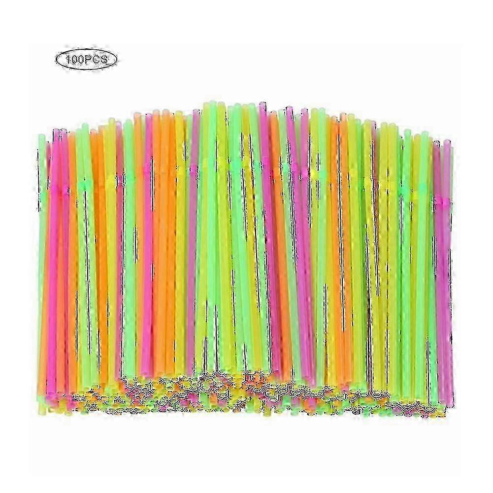w 100pcs Fluorescent Plastic Bendable Drinking Straws Disposable Beverage Straws Wedding Decor Mixed Colors-cl.