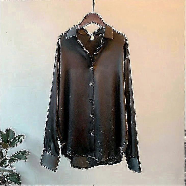 w Long-sleeved Satin Shirt Women's Design Niche Drape Vintage Hong Kong Style Blouse Tops
