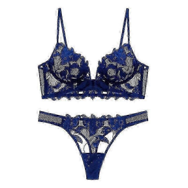 w French Lace Flowers Embroidery Bra Set Sexy Deep V Push Up Bras Women Ultra Thin Underwear With Thongs Set Breathable Lingerie