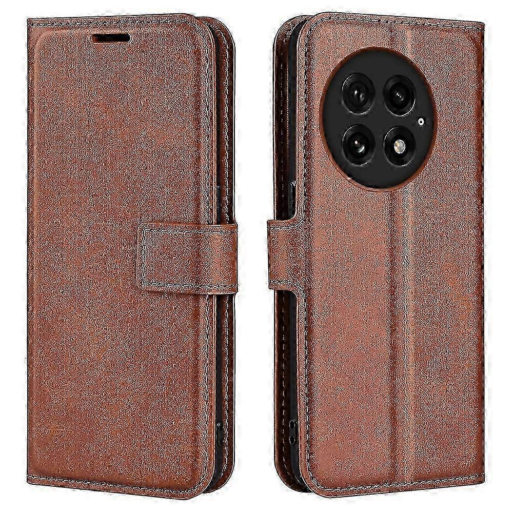 w For OnePlus 13 Stand Case Anti-Scratch Calf Texture Leather Phone Cover-Light Brown