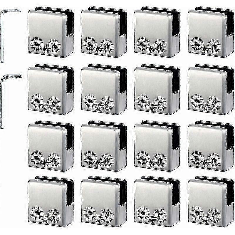 w 16-Pack 304 Stainless Steel Adjustable Square Glass Clamps for Stair Balustrade, Flat Polished Clamps