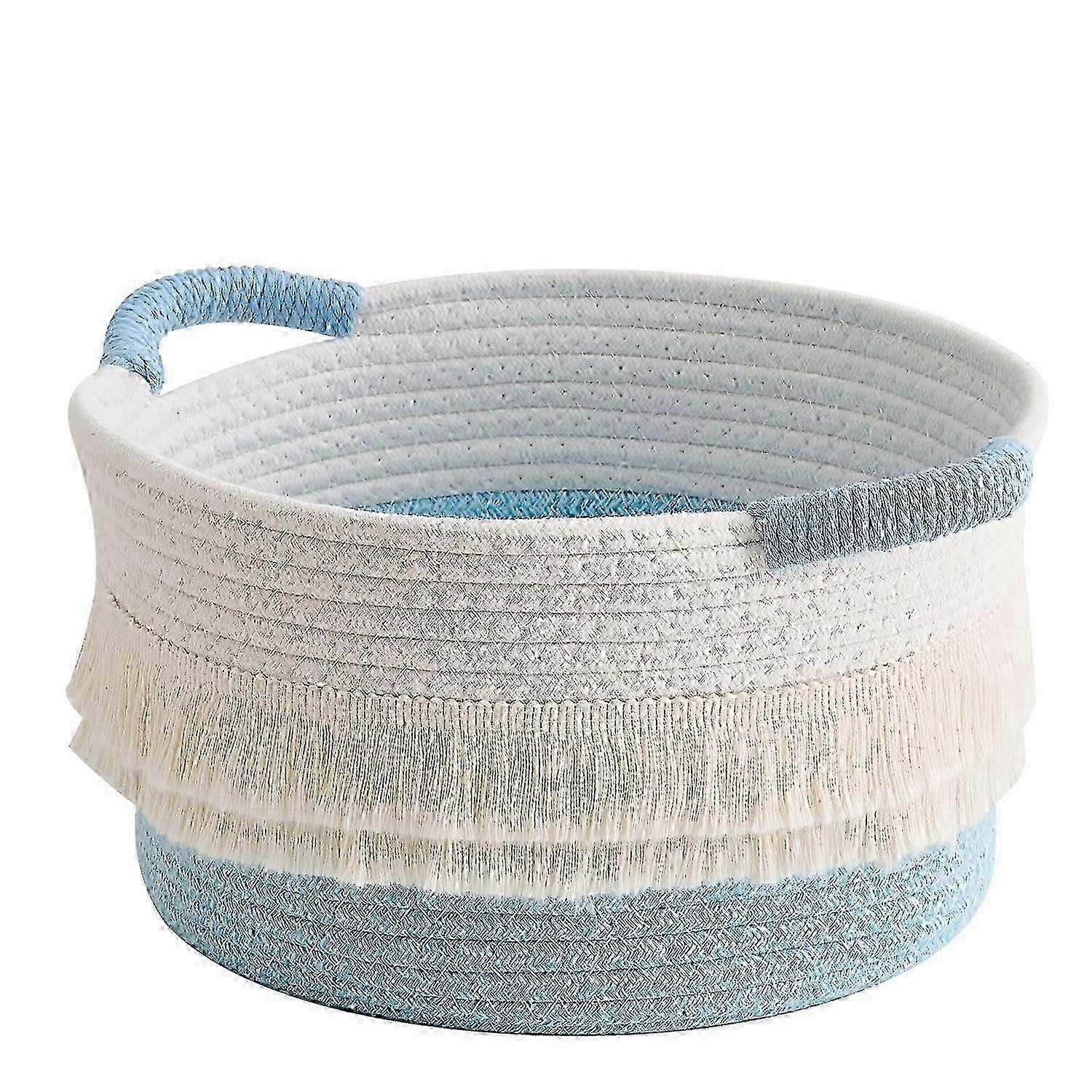 w Round Woven Cotton Rope Storage Basket for Nursery, Laundry, Toys, Cosmetics, and Books (11in/1PC)