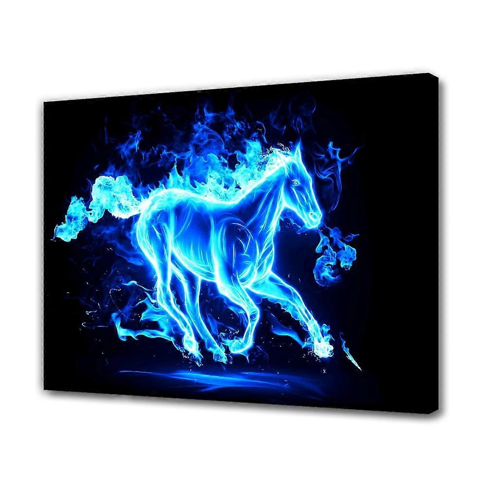 Blue Abstract Horse Canvas Poster Bedroom Decor Sports Landscape Office Room Decor Gift,Frame-style,16x24inch(40x60cm)