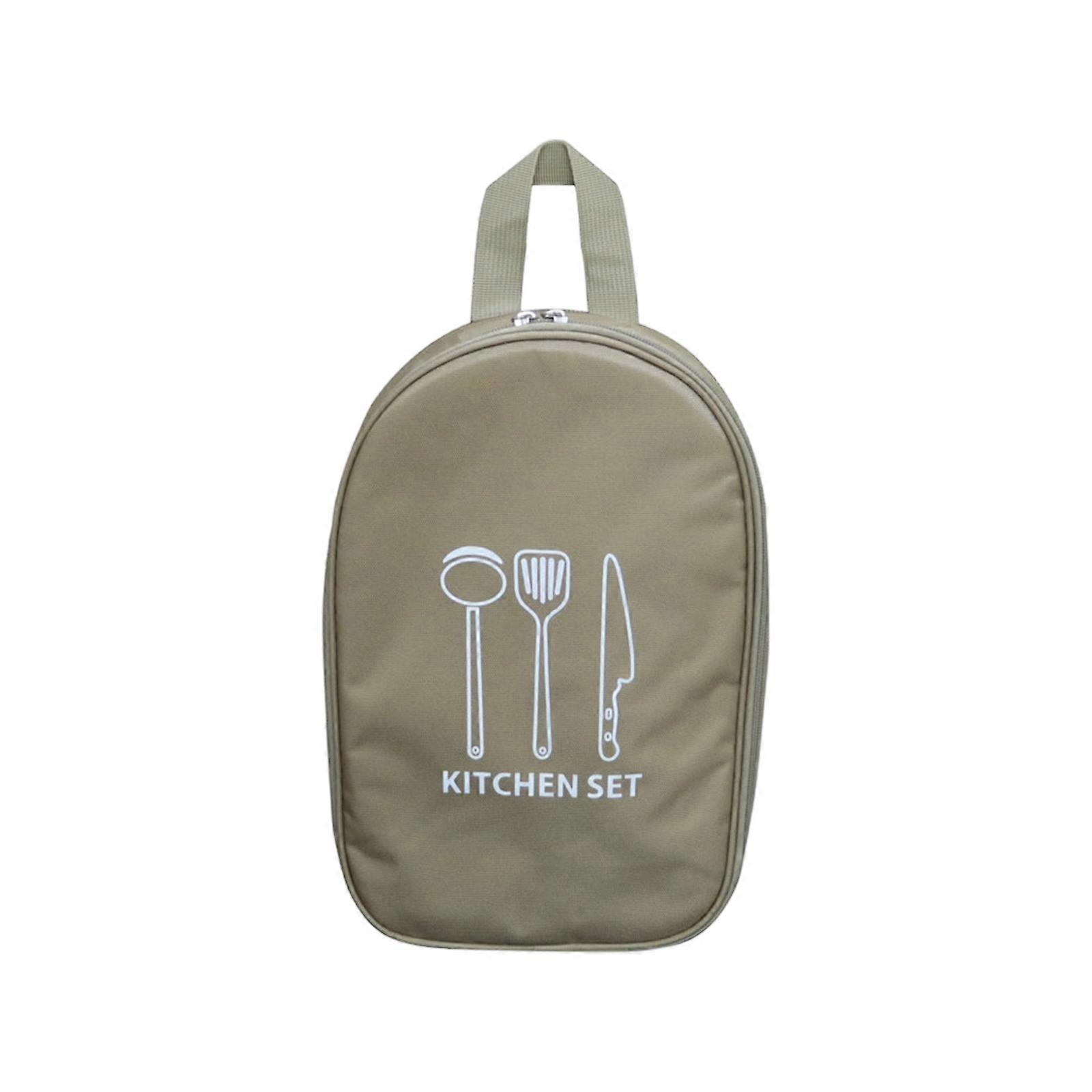 Multiple Compartment Cooking Tool Storage Pouch With Handles For Camping Hiking Beach BBQ Cooking Khaki